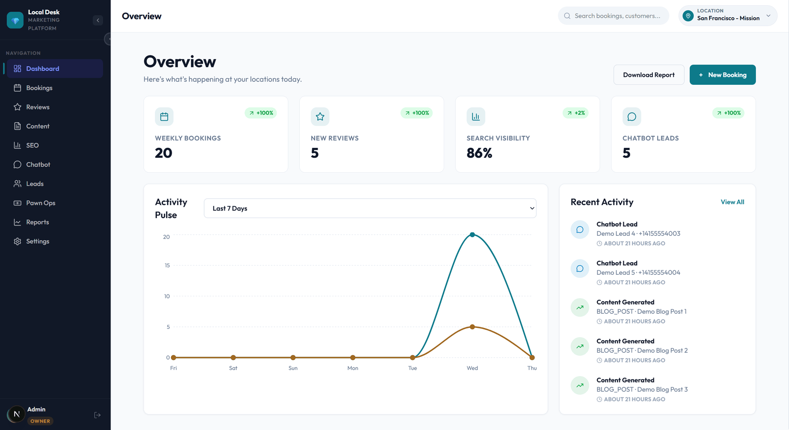 We replaced five different expensive tools with one simple dashboard designed specifically for local service businesses and pawn shops.